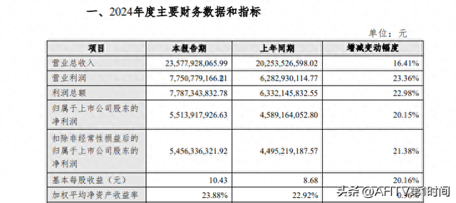 4月8日晚,古井贡酒(000596)发布业绩快报:2024年公司实现营收235.8亿元,同比增长16.4%;实现归属于上市公司股东的净利润55.1亿元,同比涨幅为20.15%。盈利增速超过收入涨幅已经成为古井贡酒这几年的“常态”。